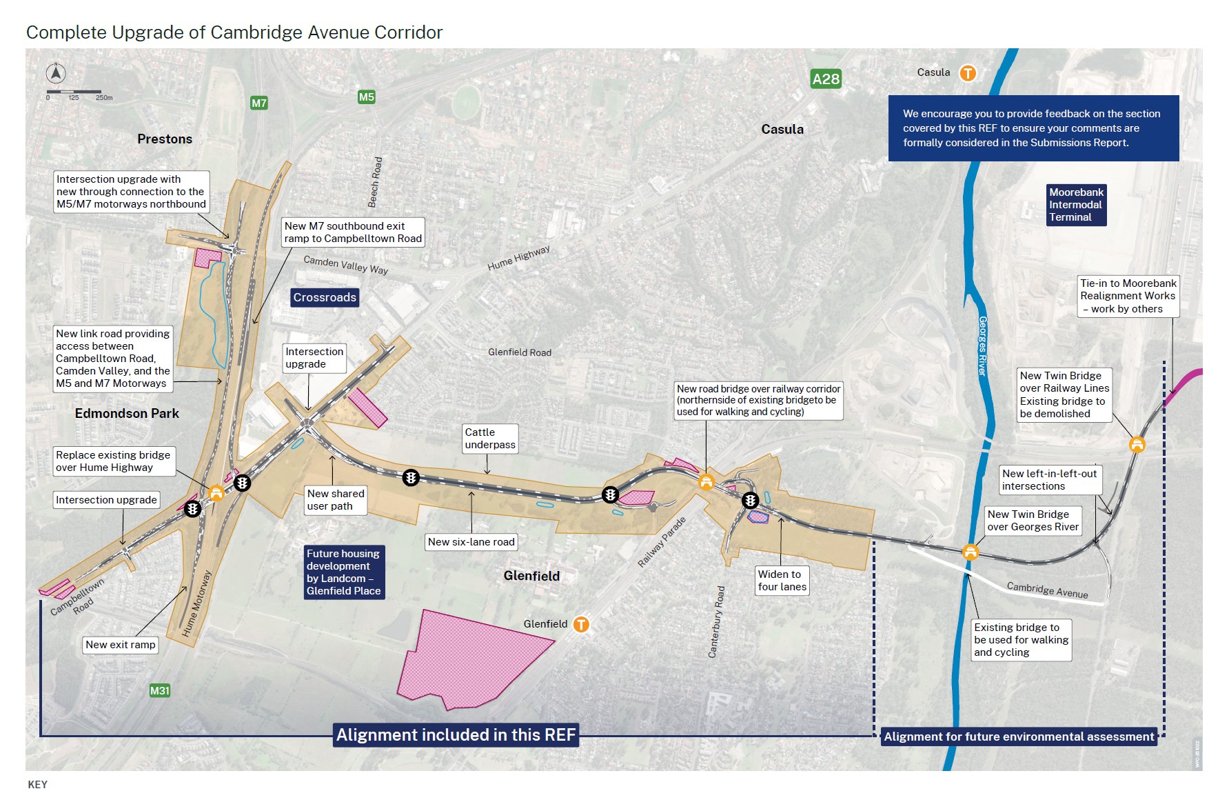 - Construct new motorway ramps and a link road to connect Campbelltown Road, Camden Valley Way, the Hume Motorway, the M5 and M7