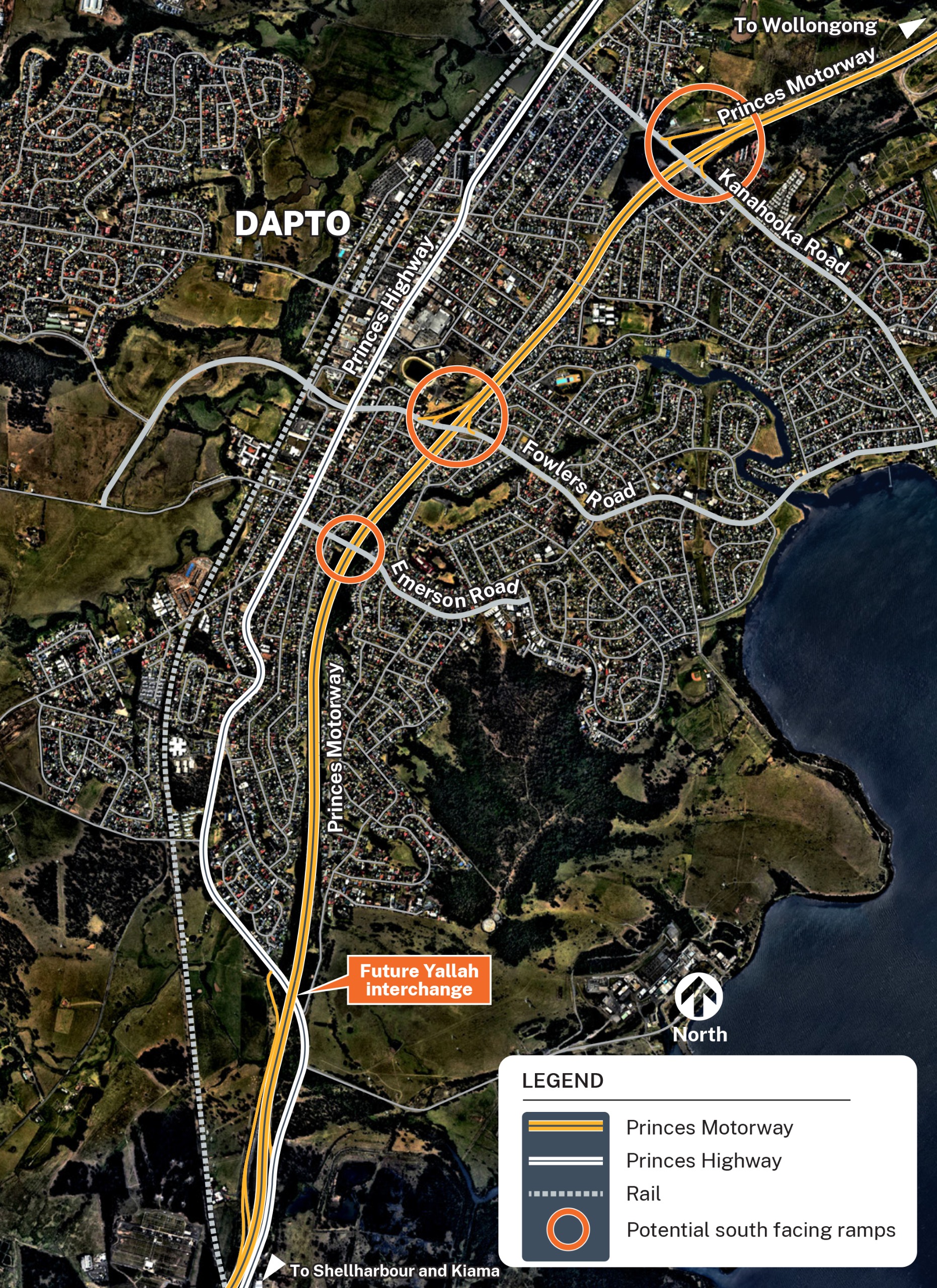 The addition of south facing entry and exit ramps at Dapto aims to reduce the distance and time residents must travel when heading to or from the area south of Dapto.