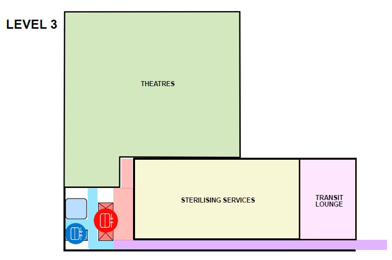 Level 3 will be home to the transit lounge, along with new operating theatres and a sterilising department, located directly above Emergency for quick access.