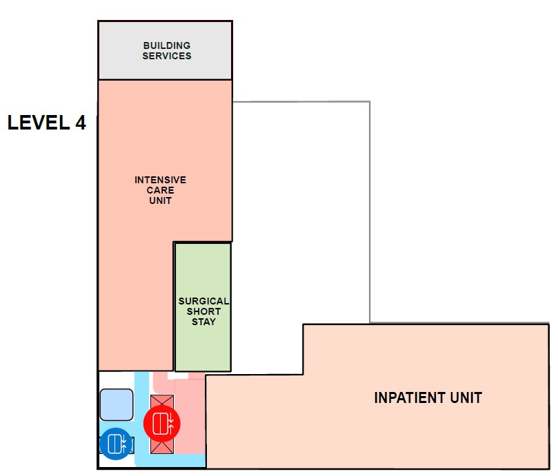 Level 4 would include the Intensive Care Unit, Surgical Short Stay and a patient ward.