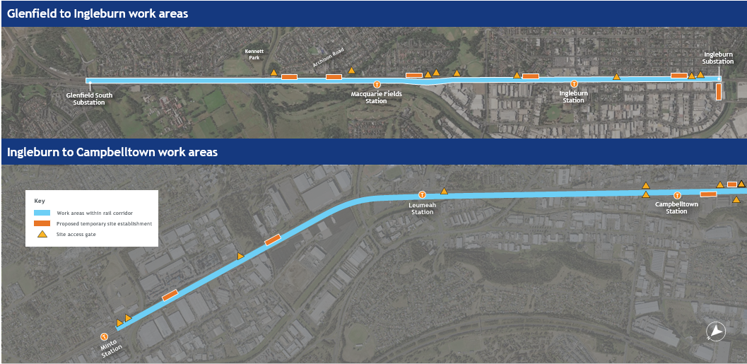 Works will occur within and adjacent to the rail corridor between Glenfield and Campbelltown and includes: