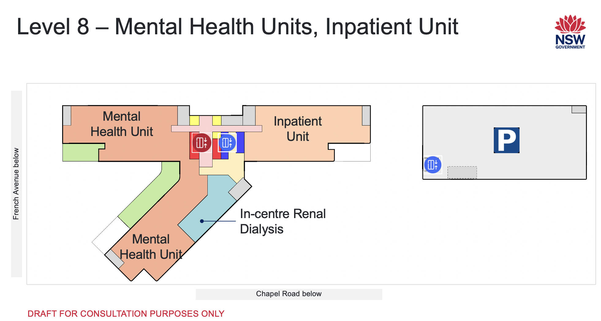 Level 8 will have patient wards, including dedicated wards purpose-built for contemporary mental health care.