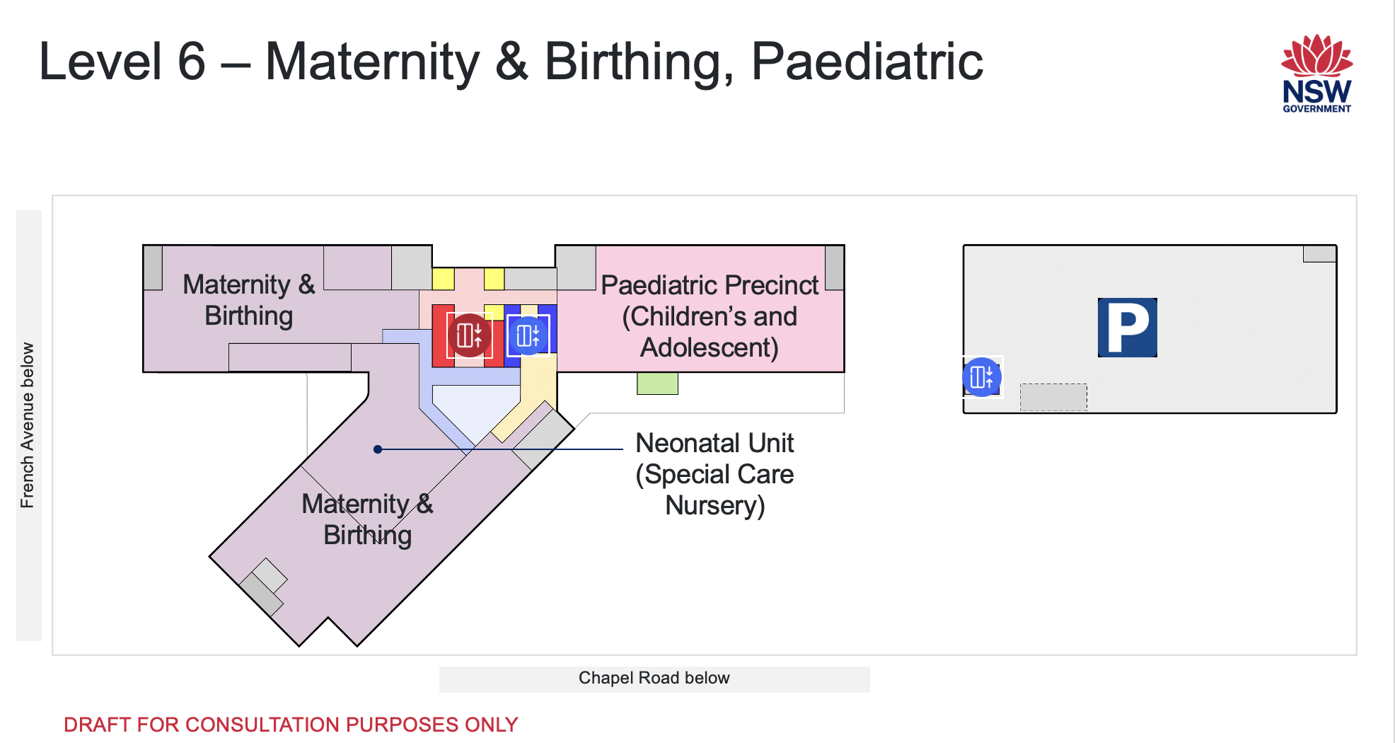 Level 6 will include maternity and birthing as well as the Neonatal Unit (Special Care Nursery).