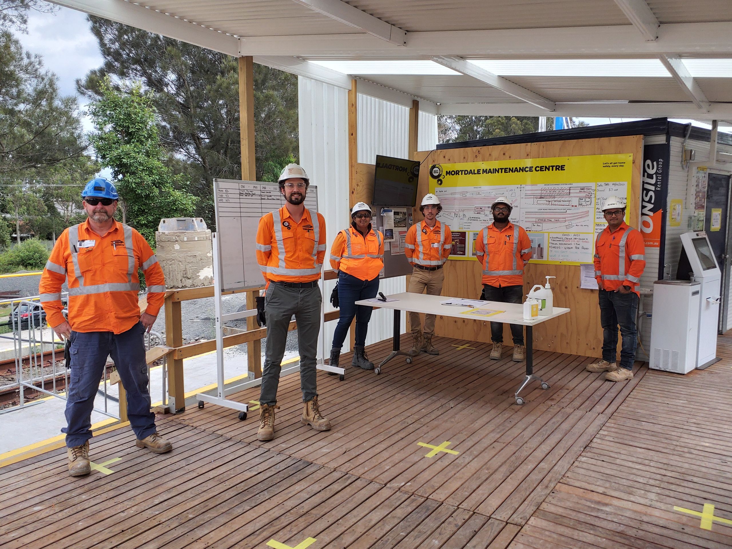 Image: The Mortdale Maintenance Centre project team and subcontracted concrete supplier meeting on-site to identify a more sustainable approach to construction.
